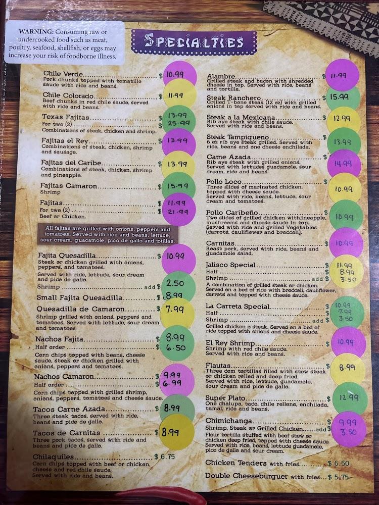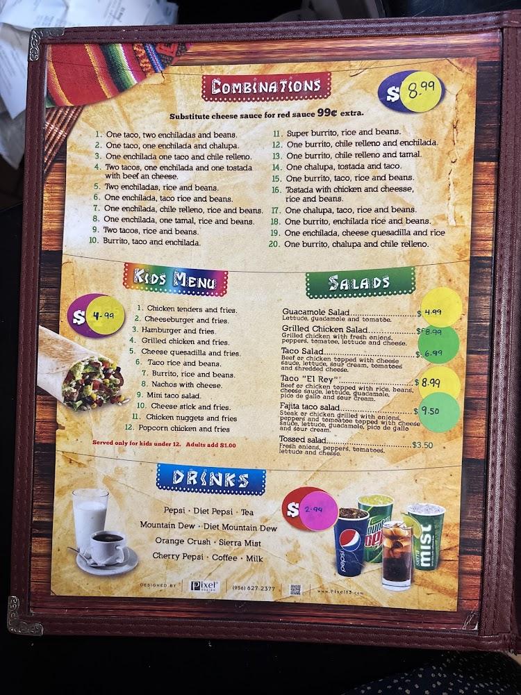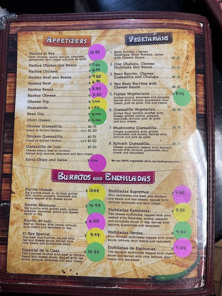The menu at EL REY includes a wide assortment of authentic Mexican dishes. Appetizers range from nachos to salsa. Categories showcase everything from burritos to specialty dishes like Chile Colorado and Texas Fajitas. Vegetarian options form a major part of the offering, inviting everyone to partake.